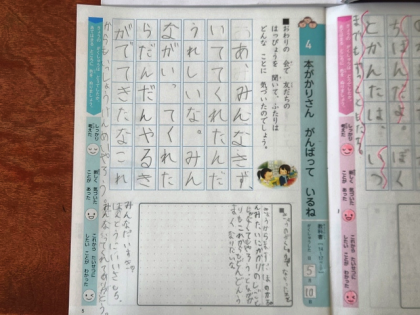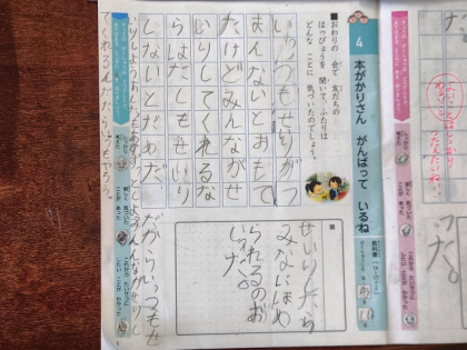 道徳の時間は、教材文「本がかりさん がんばって いるね」を学習しました。