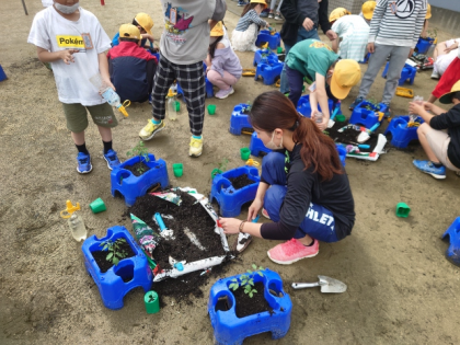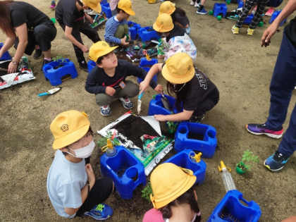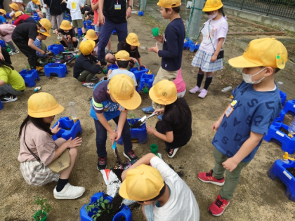ミニトマトの苗を植えたよ(2年生) 〜5月15日〜