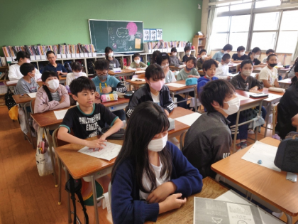 朝会の後、6年生で「明元素(メイゲンソ)ことば」と「暗病反(アンビョウタン)ことば」の話をしました。