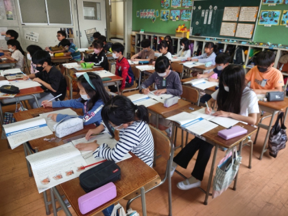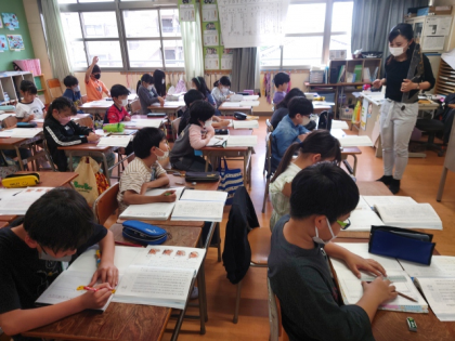 国語科の時間は、教科書の教材文「ヤドカリとイソギンチャク」の学習をしています。