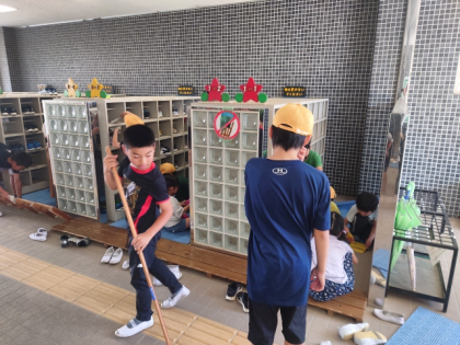 子どもたちが一生懸命学校をきれいにしています。
