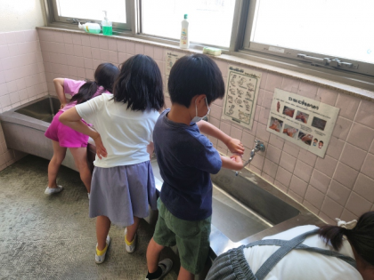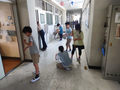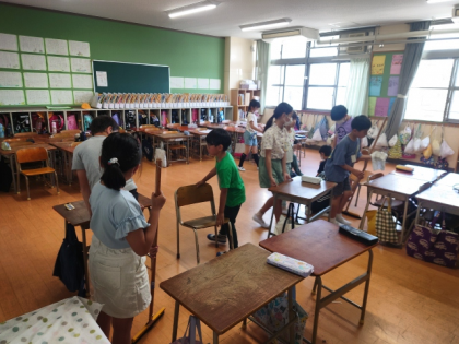 子どもたちが一生懸命学校をきれいにしています。