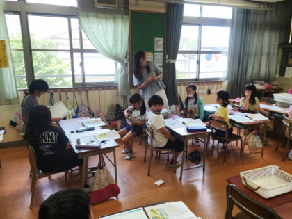子どもたちは、かめさんがりすさんを背中に乗せて、池をわたっているときのみんなの気持ちを考えました。