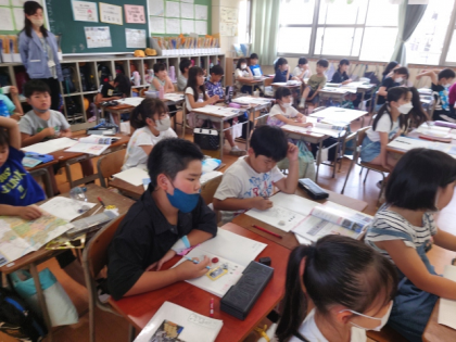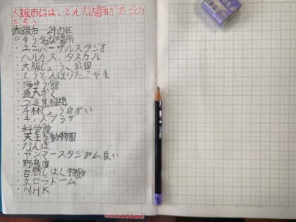 社会科の時間は、大阪市にはどんな場所があるのか地図や教科書などで調べました。