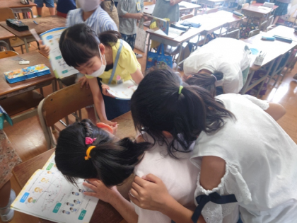 今日は、"Hello."”How are you?""I'm fine."などのあいさつの英語の表現について、ペアでやりとりをするなどして楽しく学習しました。