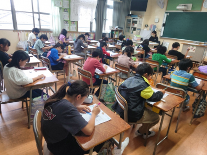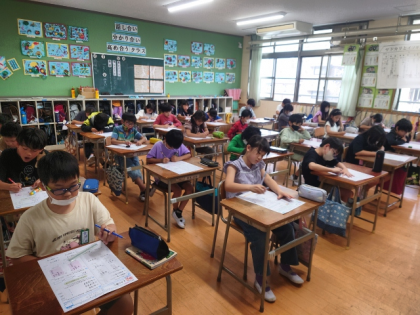 算数科の「わり算」のテストに集中して取り組んでいます。