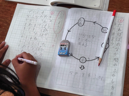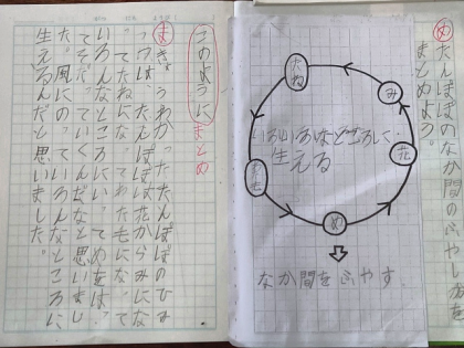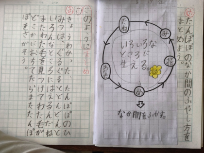 今日は、「たんぽぽの仲間の増やし方」について本文から読み取り、ノートにまとめました。