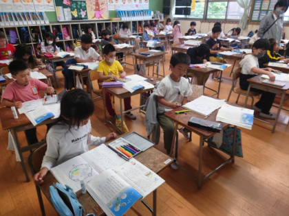 まとめの文は、子どもたちはノートいっぱいに書いていました。