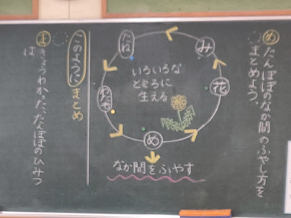 今日は、「たんぽぽの仲間の増やし方」について本文から読み取り、ノートにまとめました。
