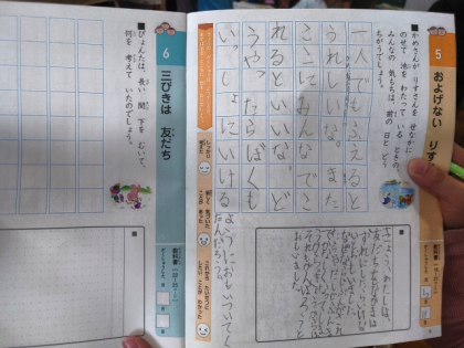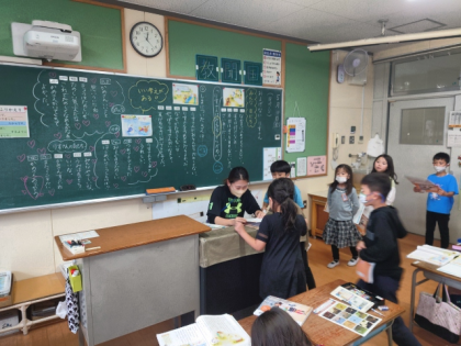 子どもたちは、かめさんがりすさんを背中に乗せて、池をわたっているときのみんなの気持ちを考えました。