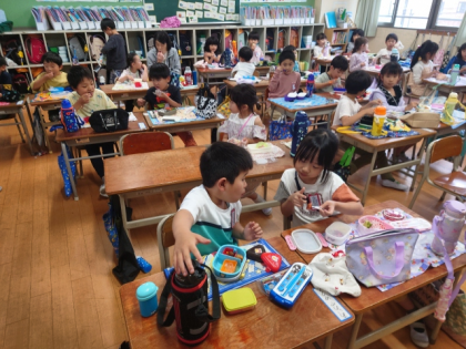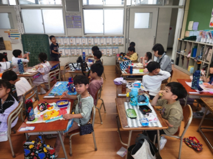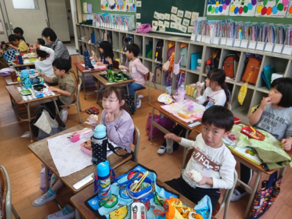 子どもたちはとても残念がっていましたが、教室でおいしいお弁当を食べました。