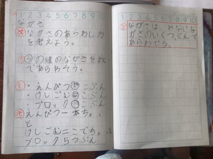 「えんぴつ○本分」「けしごむ○こ分」「ブロック○こ分」など、いろいろな表し方がありますね。