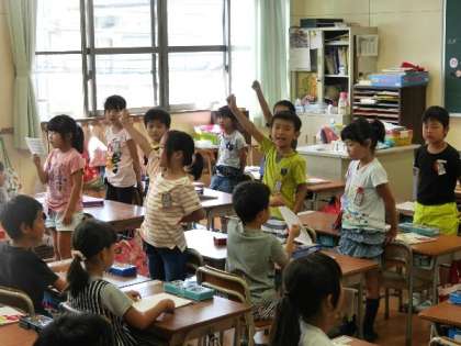 うんどう会にむけて1年生が元気よく歌って練習していました。