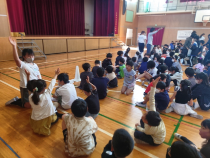 教室では、6年生のリーダーがいろいろなことをやさしく教えていたり、講堂までの移動のときは、6年生が1年生の手をつないで一緒に歩いたりしている姿が見られました。