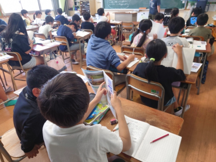 社会科の時間は、全国各地の3月の頃の写真を比べたり、桜の開花時期の違いを資料で調べたりして、国土の気候の特色について考えました。