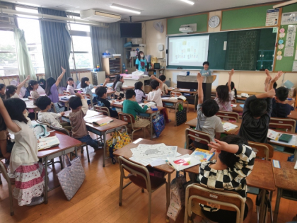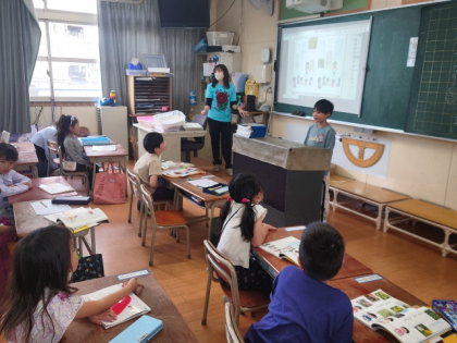 身の回りで見つけたものをクイズにして、みんなの前でクイズを出したり、友達のクイズを聞いて答えたりして、楽しく学習しました。