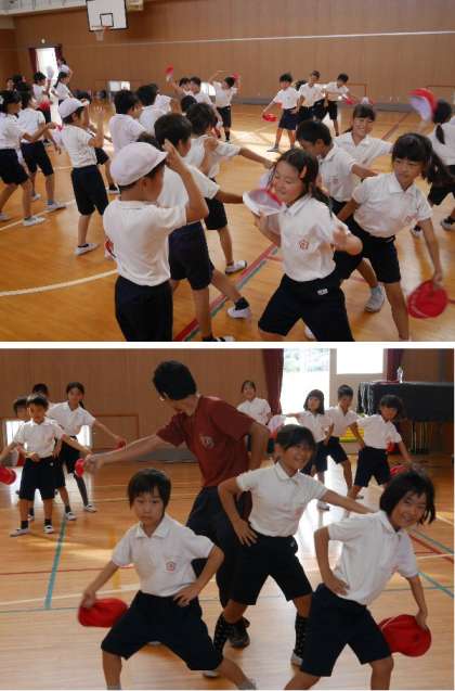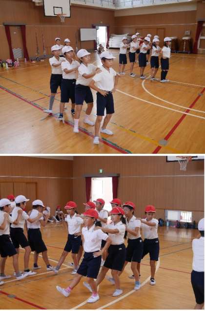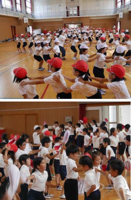 3・4年生が運動会の練習をしています。いろいろなステップや動きがたくさんありますね。頭がこんがらがらないようがんばってね。