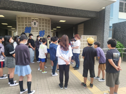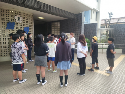 1週間の「あいさつ運動」が終了し、全員で振り返りをしています。