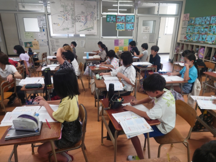 算数科の時間は、教科書の資料見ながら「どの学年に、どんなけがが多いのか」「正」の字を使って数え、表にまとめる学習をしました。