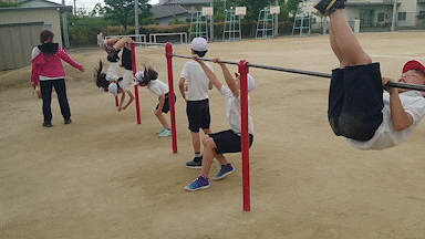 体育科の時間は、さかあがりなど鉄棒のいろいろな技の練習をしました。
