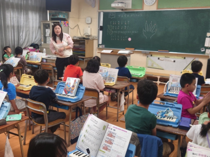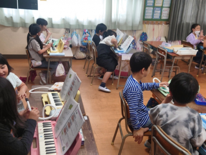 音楽科の時間は、「かえるのがっしょう」を鍵盤ハーモニカで練習しました。