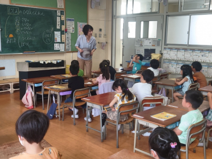 避難訓練の前に、各教室で「お・は・し・も」(「おさない」「はしらない」「しゃべらない」「もどらない」)の指導をしました。