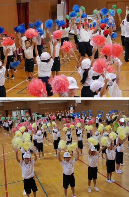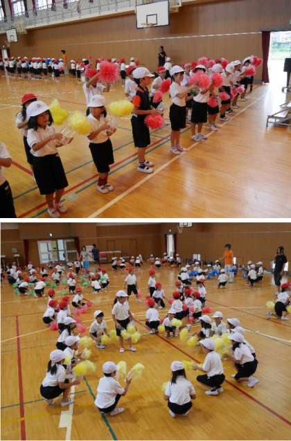 1・2年生が演技の仕上げにむけて、細かいところもチェックしながらがんばってます。