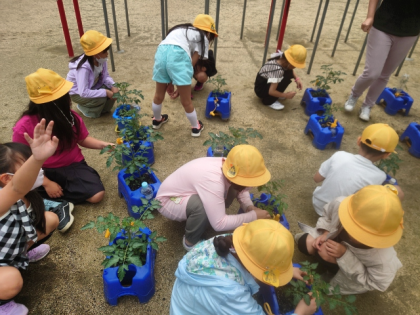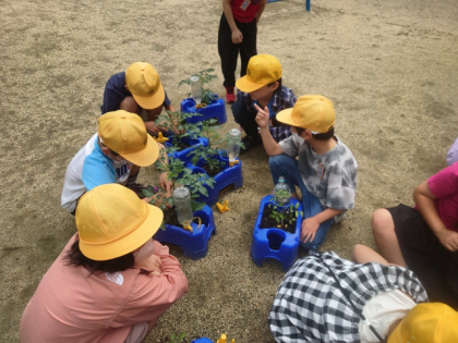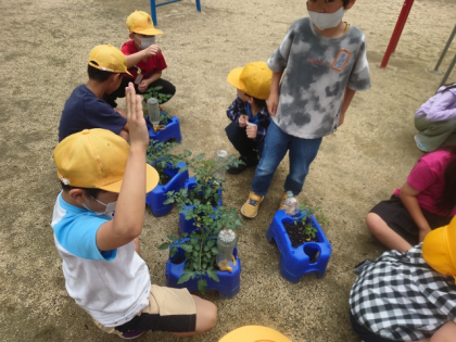 生活科の時間に、子どもたちが鉢に植えているミニトマトのお世話をしました。