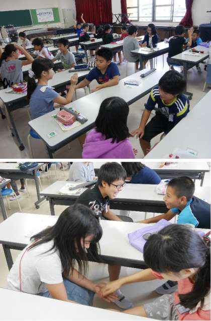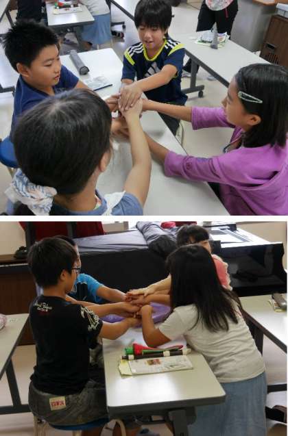 音楽室から、6年生の楽しそうな声が聞こえてきます。友だちどうしで、互いにリズムをとりあったりしていました。