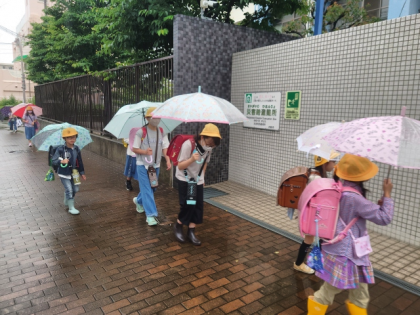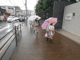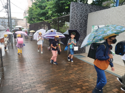雨の中の登校になりました。