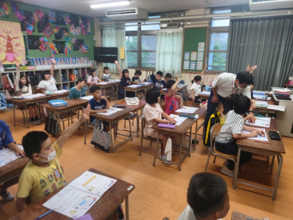 算数科の時間は、算数ドリルの「長さのたし算・ひき算」の問題を考えています。