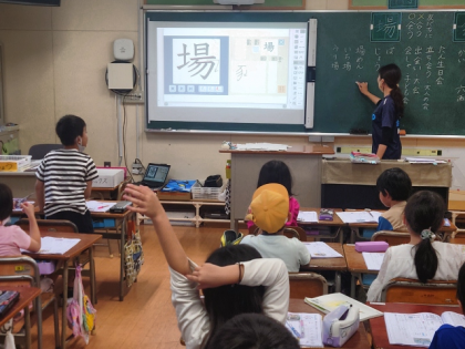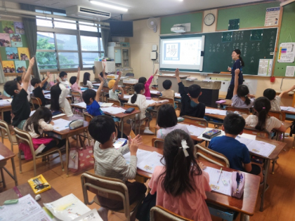 国語科の時間は、「会」「場」などの新出漢字の練習をしました。
