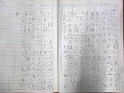 国語科の時間は、焼野小学校とイタリアの小学校の生活を比べて、ノートに思ったことや考えたことを書きました。