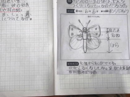 理科の時間は、チョウの体のつくりについて学習しました。