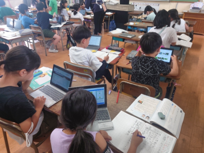 子どもたちは、パンジーやアゲハチョウ、給食、黒板など、身近なことについて調べているようです。