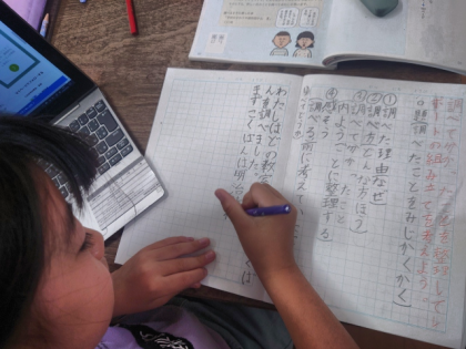 国語科の時間は、知りたいことについて調べ、分かったことをレポートにまとめます。