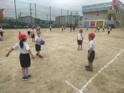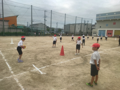 体育科の時間は、ボールを投げたり受けたりする学習をしました。