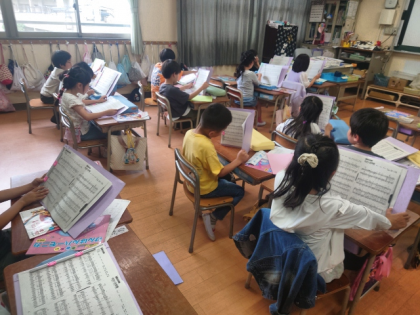 音楽科の時間は、「手のひらを たいように」「にじ」などの歌をみんなで楽しく歌いました。