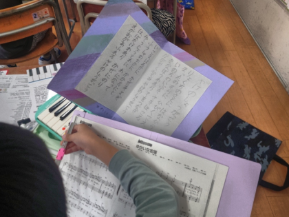 6年生にもらった校歌の歌詞カード、大切に使っています!