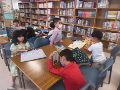 図書室で、興味のある本を選んで読んでいます。