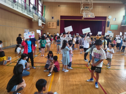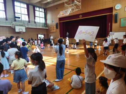 数年ぶりに、全校児童が講堂に集まって児童集会を行います。