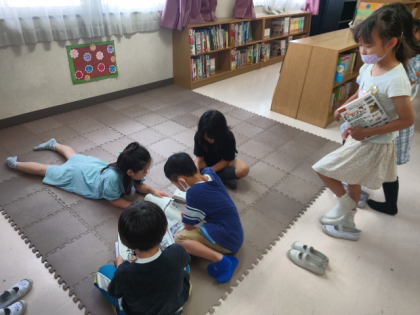 子どもたちは、友達といっしょにゆったり本を読んでいます。