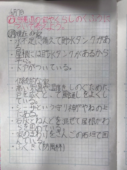 沖縄の家のつくり(5年生) 〜6月7日〜