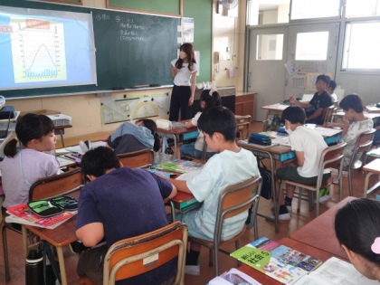 社会科の時間は、日本の各地の気候についてグラフを読み取りながら調べ、それぞれの気候の特色をノートにまとめていきました。