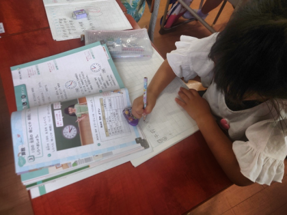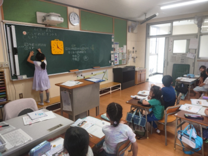 算数科の時間は、「時こくと 時間」の「たしかめポイント」(まとめの問題)を解いています。
