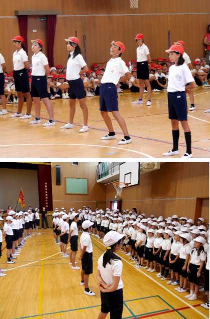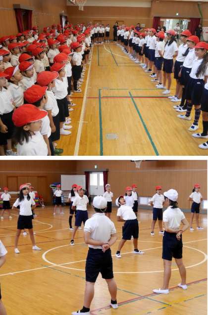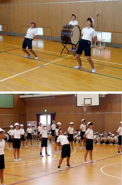 運動会全体練習の最後に、応援団の練習がありました。赤組と白組のそれぞれの団長も力がはいっています。全員で応援歌の練習をしました。