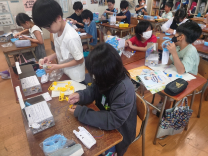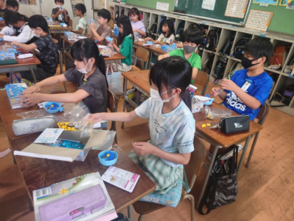 理科の時間は、実験教材の箱を開けて、電流について調べる実験をするための準備をしました。
