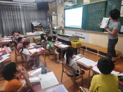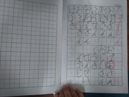 国語科の時間は、「おばあさん」「くうき」など、のばす音の学習をしました。