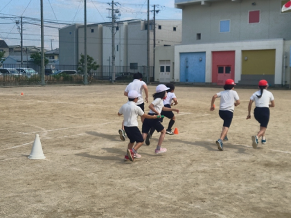 体育科では、チームに分かれてリレーの学習をしました。