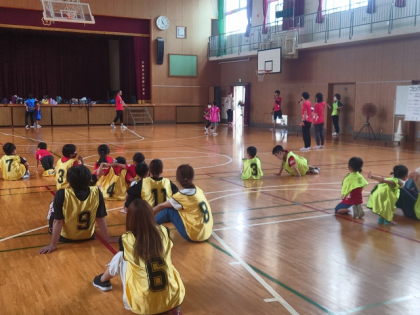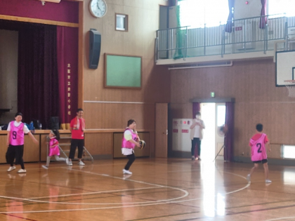 午前中は、障害物リレーやバスケットボールリレーなどのスポーツで、親子で楽しく汗を流しました。
